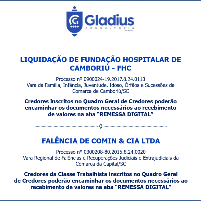 A GLADIUS CONSULTORIA E GESTÃO EMPRESARIAL S/S LTDA é empresa especializada com competente registro no órgão de fiscalização da profissão de administrador de empresas - CRA/SC 1025-J.